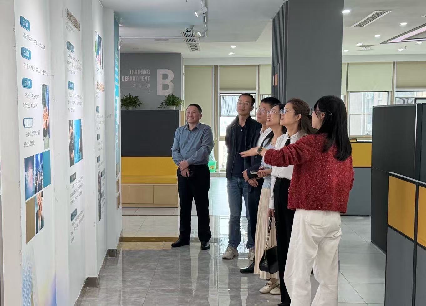 4月17日下午,廣東省江門市蓬江區(qū)人社局黨組書記、局長張玉,蓬江區(qū)區(qū)委組織部副部長李麗芳,蓬江區(qū)人社局副局長溫志明一行蒞臨江西銀控科技集團(tuán),就深化跨省人力資源協(xié)同、拓展校企合作深度、優(yōu)化勞務(wù)對接機(jī)制等議題開展實(shí)地交流。集團(tuán)董事長李民全程陪同考察。